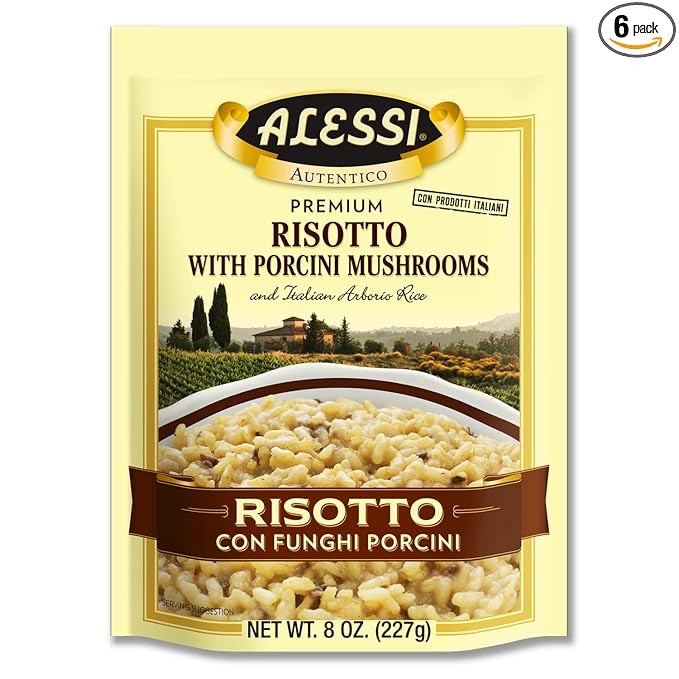 - AUTHENTIC- rich creamy risotto is great for the soul! Gather around the dinner table with your loved ones or have a quick lunch with Alessi risotto. Either way, you’ll enjoy our heart-warming risotto with porcini mushrooms. This dish is a wonderful accompaniment to most grilled meats, duck, and shrimp.