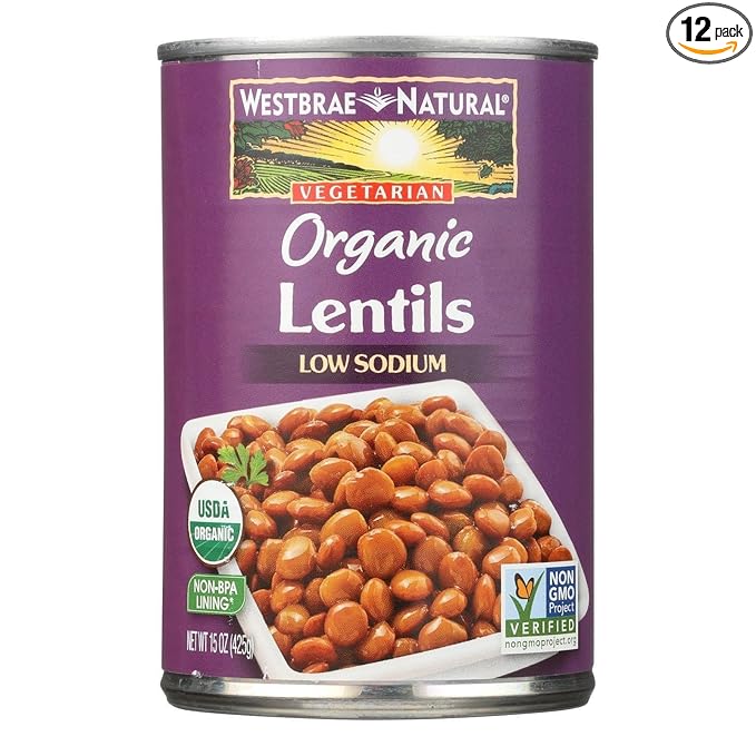Westbrae Natural Organic Lentil Beans, No Salt Added, 15 Oz (Pack of 12) (Packaging May Vary)