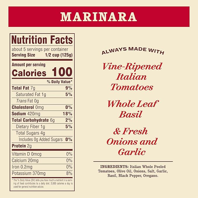 - INGREDIENT FOCUSED: Using the Rao’s Homemade classic recipe, this carb conscious marinara sauce is made with high quality, wholesome ingredients including tomatoes, olive oil, onions, garlic, basil and oregano