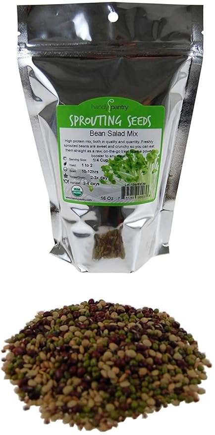 Bean Salad Sprouting Seed Mix- Organic- 1 Lbs- Mix of Bean Sprout Seeds: Adzuki, Mung Bean, Green Lentil & Radish. For Sprouting Sprouts, Soup, Food Storage
