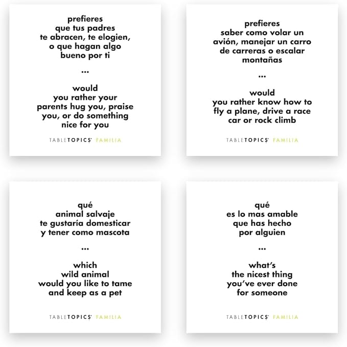 TableTopics Familia En Espanol Question Card Game - 135 Spanish/English Conversation Starter Cards, Game to Learn & Practice Spanish, Play with Friends & Family, Bilingual