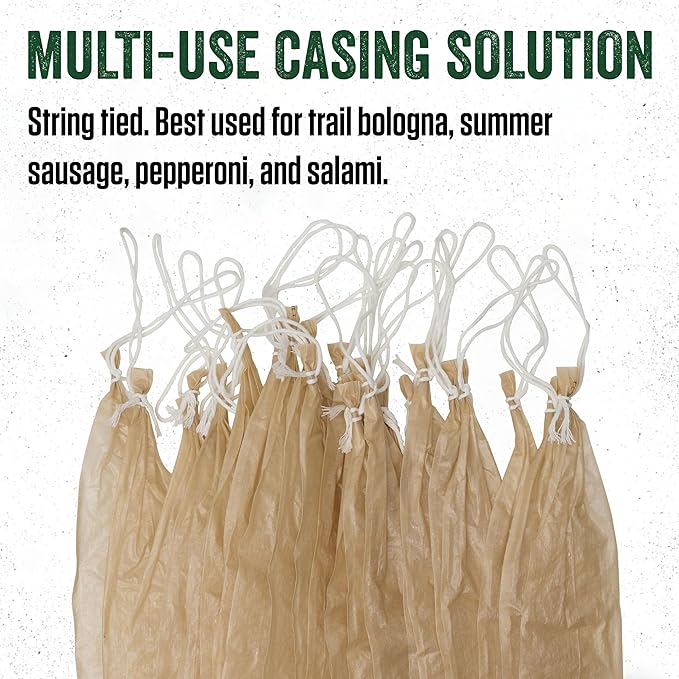 - Multipurpose: These casings are the perfect choice for crafting a variety of sausages. Their unique design allows optimum flavor penetration, perfect for summer sausage, trail bologna, pepperoni, and salami.