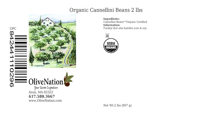 OliveNation Organic White Cannellini Beans, Dry White Kidney Beans, Non-GMO, Gluten Free, Vegan - 2 pounds