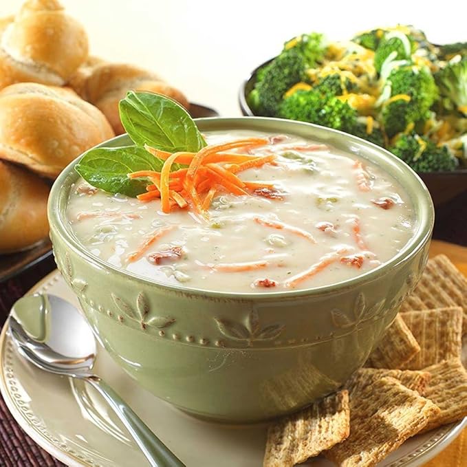 - 100% Certified GMO Free - 25-year shelf life - Meals come in 4-serving Mylar pouch with an oxygen absorber and nitrogen flush - Packed in 1 Large Bucket
