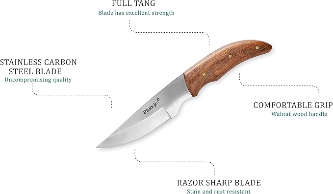- 1) Premium Materials: With a stainless-steel blade that is both durable and resistant to corrosion and a walnut wood handle for secure handling this knife combines utility with nature's beauty.