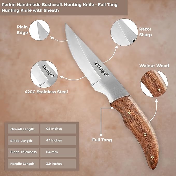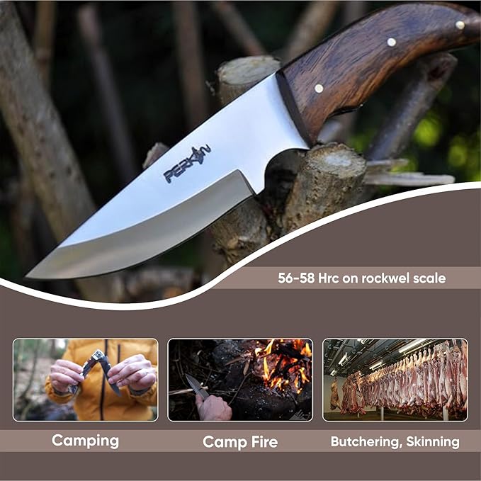 Perkin Handmade Fixed Blade Hunting Knives-Full Tang Bushcraft Fixed-Blade Knives for Men Woman Outdoor, Camping, Survival Tactical, Fighting, Hiking, Skinning, Hunter-Unisex Adults