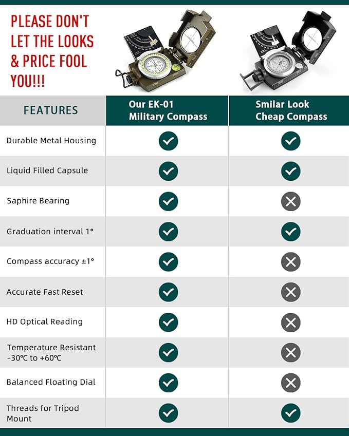 - ✔️PERFECT FOR OUTDOOR ADVENTURES - It works great at taking bearings and sighting when camping, hiking, hunting, scouting, and more.