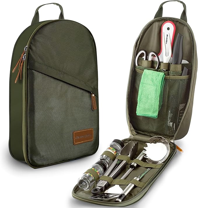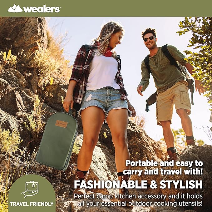 Camp Kitchen Cooking Utensil Set Travel Organizer Grill Accessories Portable Compact Gear for Backpacking BBQ Camping Hiking Travel Cookware Kit Water Resistant Case