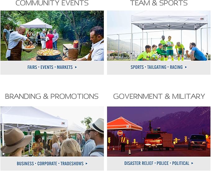 - ABCCANOPY-professional and cost-effective: ABCCANOPY is the pop up canopy brand based in the USA, has professional tent specialist, design and sell the most professional and cost-effective canopy tent, deeply trusted by the American people. This model include more necessary accessories and useful panels,perfect for any occasion. The 150 square feet of cool shade big enough for about 8 or 10 people, with plenty of room for a table and chairs.