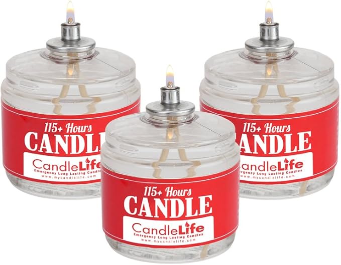 Candlelife Emergency Survival Candle (Set of 3) - 115 Hours Long Lasting Burning Time - Great Source of Light for Blackout, Camping, Fishing and Hunting