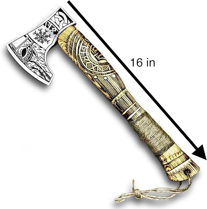 - ✅ Sturdy Viking Axe with Perfect Grip Handle, Comes with Leather Scabbard.