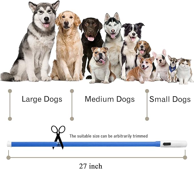 - One size fits all: to fit your precious pooch, you can cut This glowing dog collar to the length of your pet with scissors. The default length is 27. 5 inches