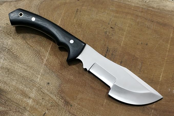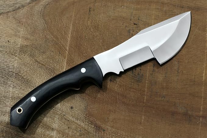 - ✅ ABOUT GCS BLADE: GCS hunting knives - Made of D2 tool steel - heat treated and oil quenched to acquire a hardness of 59 HRC, Aluminum Rod Pins, Brass Tube Lanyard Hole, High Polished Stainless Bolsters.. The sharpened edge curves upward, meeting it at the tip. As the back edge is not sharp, you can press it with your fingers to add extra force or pressure, mainly for cutting. A must-have hunting knife for every hunter.