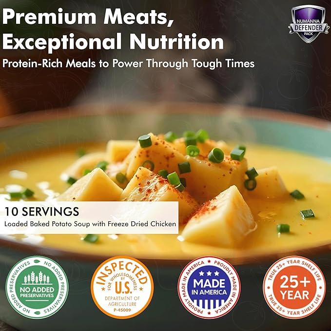 - DEFENDER PACK WITH MEAT:- The Defender Pack w/ Meat represents a new frontier in storable food solutions, designed as the ultimate Protein-Rich Survival Food Pack. After perfecting the Family Pack, we pushed the boundaries by adding superfoods and sprouting seeds to significantly enhance the overall nutrition level. The NuManna Defender Nutritive Pack has set a new industry standard, with the meals that NuManna lovers appreciate, now with the added horsepower of live nutrition and protein-rich meats.