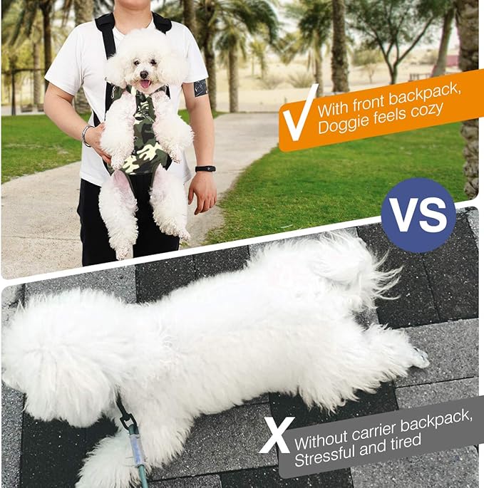 - Two Ways of Wearing: A hands-free pet carrier can be worn on your front side or your backside if you like, it keeps you closer and increases pet's sense of security when you carry your cat or dog around. Meanwhile, the thickened sponge pad helps to relieve the burden of your shoulder.