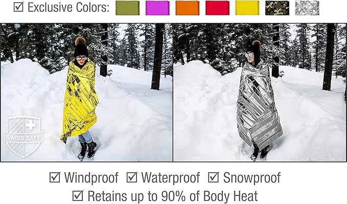 - BONUS SPACE BLANKET INCLUDED: With every purchase, receive a bonus space blanket - a smaller, more compact version of our emergency Mylar thermal blankets. This bonus blanket is perfect for keeping in your glove compartment, hiking backpack, or emergency go-bag. It offers the same heat retention and waterproof benefits in a more compact size, ensuring you're prepared for anything, anywhere, anytime.