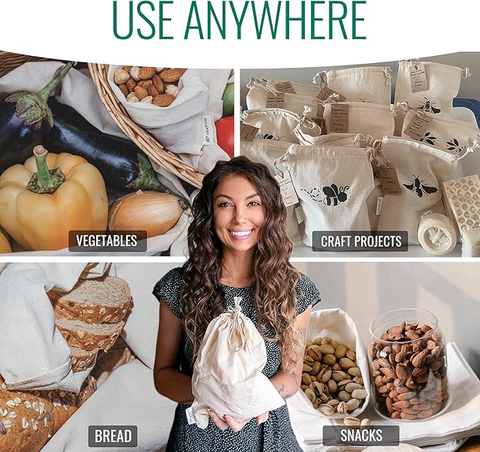 - Versatile Produce Bags - Diversified usage for travel, toy storage, wedding, produce bags, beauty accessories, swag bag, sachets bags, sports equipment bags, reusable produce bags, shoes, garden harvest, herbs, spices, grains, nuts, dry snacks, lunch items, all-purpose sack, gym, yoga clothes, school lunches, office supplies, camping trips