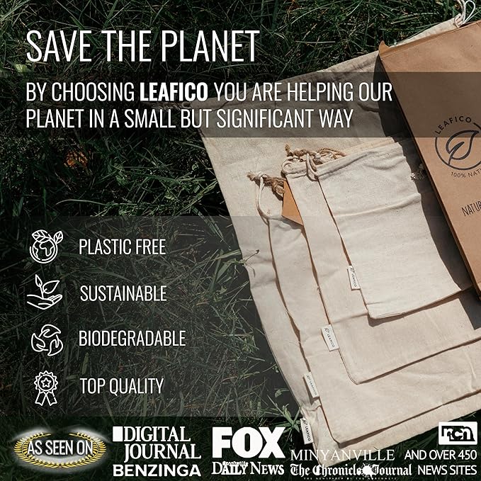 - Save The Ocean - We love the oceans, help remove plastic waste from our oceans. Use Leafico organic, biodegradable 100% cotton/muslin storage bag. Natural cotton fabric bags are smooth and soft providing good air circulation. Great muslin fabric bags.