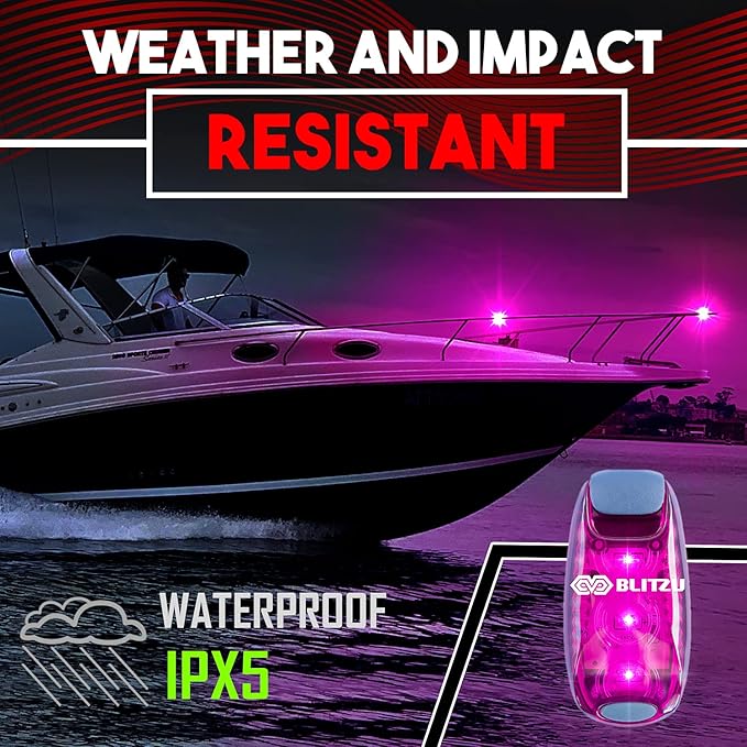 - Easy to Attach, Stays On Securely - Preinstalled with batteries for immediate use! These lights clip on easily and stay on securely. These lights can be attached to pet collars, backpacks, helmets, and jogging, or running gear. Use the included fasteners to securely strap the lights onto boat bows and sterns, reflective vest, drones, bicycles, arms, wrists, ankles or anywhere on your outdoor clothing. Perfect for use as a Kayak light or bike rear, back, and tail light.