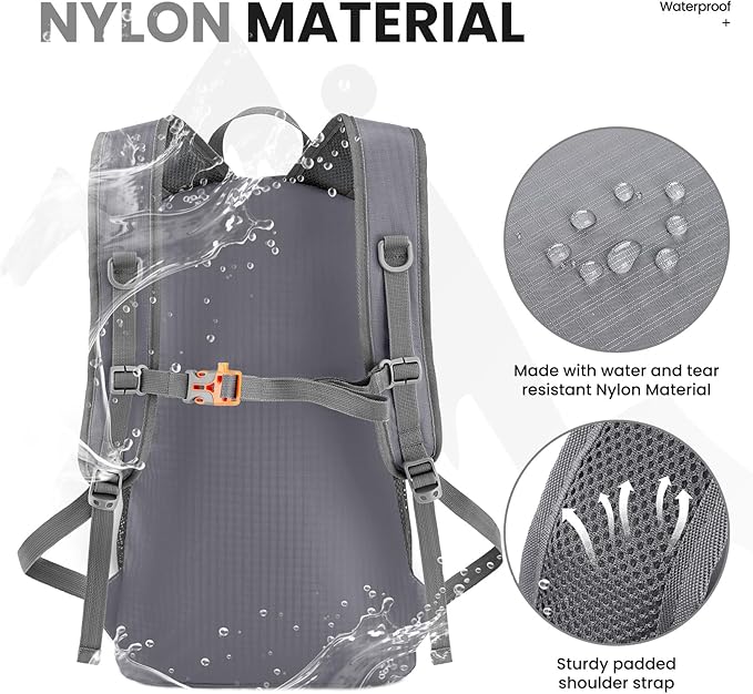 - Durable & Waterproof: Made from high-quality, tear-resistant,and water-resistant nylon,our ultra-light hiking backpack is designed to withstand tough outdoor activities.Reinforced with a double-layered bottom and bar-tacks at stress points, it offers exceptional durability for carrying gears during your travel hiking and camping adventures