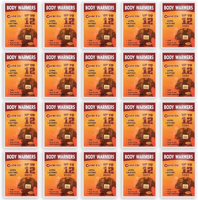 WORLD-BIO Body Warmers for Cold Weather, Heat Warmer Patch Disposable with Adhesive Backing Gives Hours Warm - 10/12/20/32/40 Packs, Hand Warmers Long Lasting Safe Natural Odorless