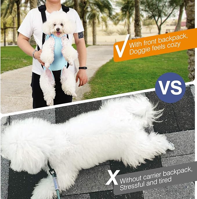 - Two Ways of Wearing: A hands-free pet carrier can be worn on your front side or your backside if you like, it keeps you closer and increases pet's sense of security when you carry your cat or dog around. Meanwhile, the thickened sponge pad helps to relieve the burden of your shoulder.
