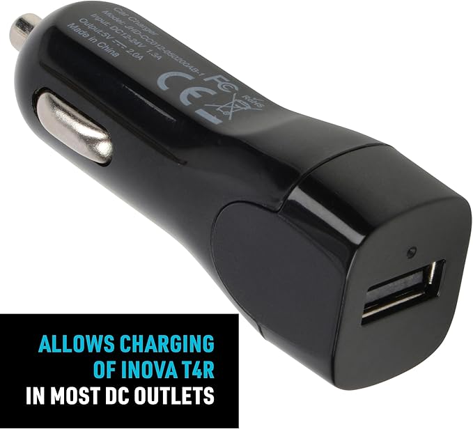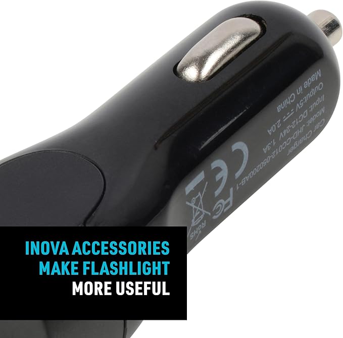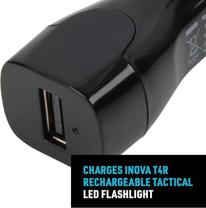 - Charger Adapter for Cars: The USB DC adapter is designed for charging your INOVA T4R Rechargeable Tactical LED Flashlight in the car