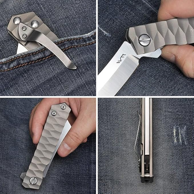 Titanium Custom Pocket Folding Knife Razor Blade Ball Bearing System with TC4 Titanium Lightweight Handle for Outdoor Camping Survival,Gift for Gentleman Husband Men