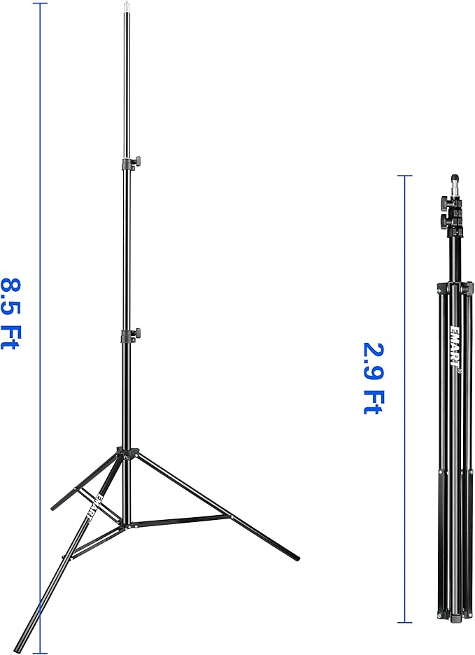 EMART 8.5 Ft Light Stand for Photography, 2 Pack Portable Photo Video Lighting Tripod for Speedlight, Flash, Softbox, Strobe, Camera, Selfie, Photographic Portrait