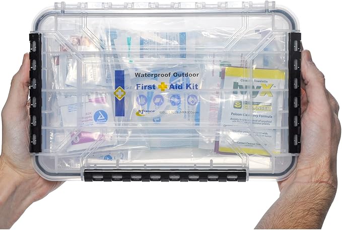 - First Aid Supplies in Waterproof Box. Assembled in USA.