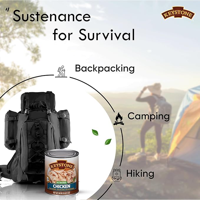 - LONG-LASTING & SHELF-STABLE:- Keystone Chicken is shelf-stable and made to last for years ( 5 Year Shelf Life from Date of Manufacture) without losing their delicious taste or nutrients. Our Chicken is great for any outdoor adventure and also make an incredible emergency food option.