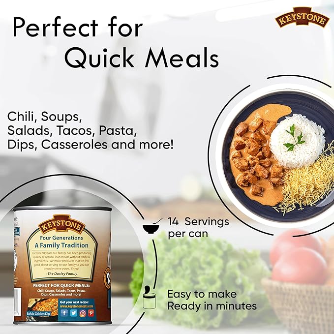 Keystone All Natural Premium Canned Chicken 28 Oz Fully Cooked | No Water Added | Ready to Meat | Quick Meals Emergency Survival Food Canned Meat Pack of 6