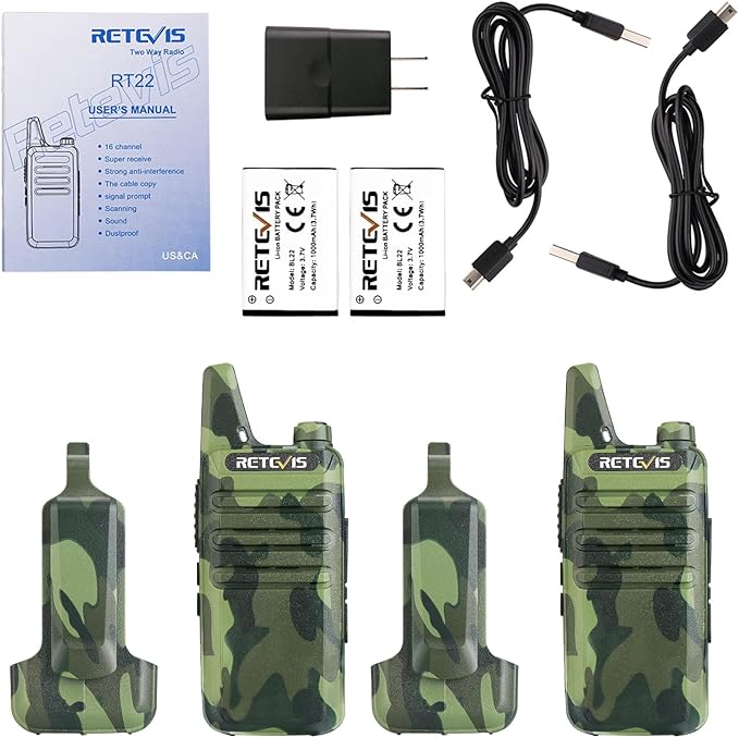 Retevis RT22 Walkie Talkies Rechargeable, Voice Activated, Emergency Alarm, Outdoor Cruise Ship ATV Hunting Skiing Handheld Two Way Radio Walkie-Talkies (4 Pack,Camouflage)