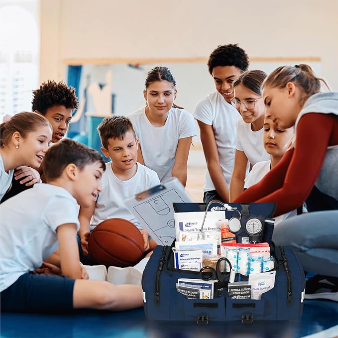 MFASCO First Aid Kit - Fully Stocked Portable Reflective Bag -First Responder Emergency Response Kit-for Natural Disaster Preparedness-Customizable Storage-Includes 415 Pcs First Aid Supplies- Blue