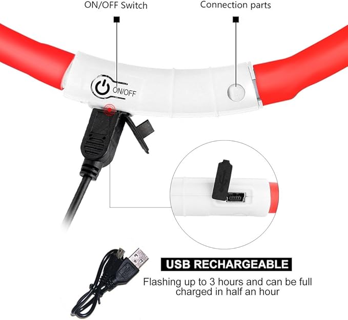 LED Dog Collar,USB Rechargeable Glowing Dog Collars, Light Up Collar Improved Pet Safety &Visibility at Night, 3 Flashing Modes,Water-Resistant LED Lighted Fits for Small Medium Large Dogs