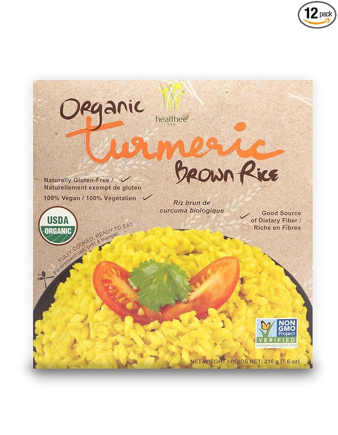 Healthee Organic Brown Rice, Gluten Free, Fully Cooked and Ready-to-Eat, USDA Certified Organic, GMO-Free, Microwaveable (Turmeric, Pack of 12)
