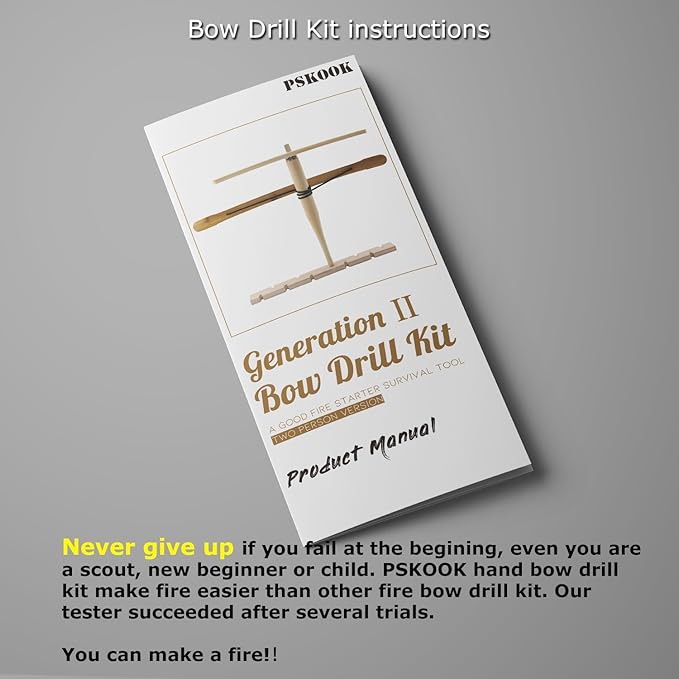PSKOOK Bow Drill Kit Fire Starter, Primitive Wood, Survival Practice Friction Fire Tool for Scout Outdoor Activity Teaching, Outward Bound Training, Wildness Survival Beginner