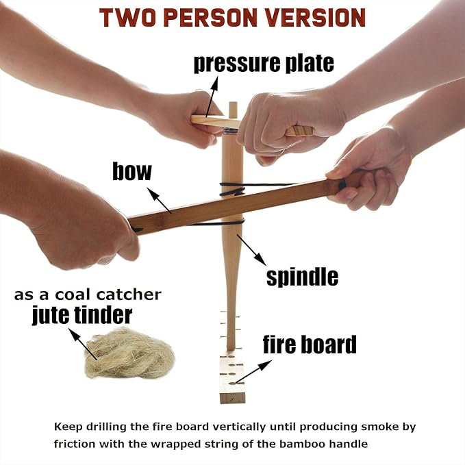 - 🆕 [UPDATED VERSION] A two-player bow drill kit, can also start a fire by one player. Start a fire with a partner together, developing the team cooperation and creative abilities. It is beneficial to make a teamwork friendships.