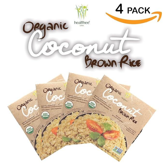 Healthee Organic Brown Rice, Gluten Free, Fully Cooked and Ready-to-Eat, USDA Certified Organic, GMO-Free, Microwaveable (Coconut, Pack of 4)
