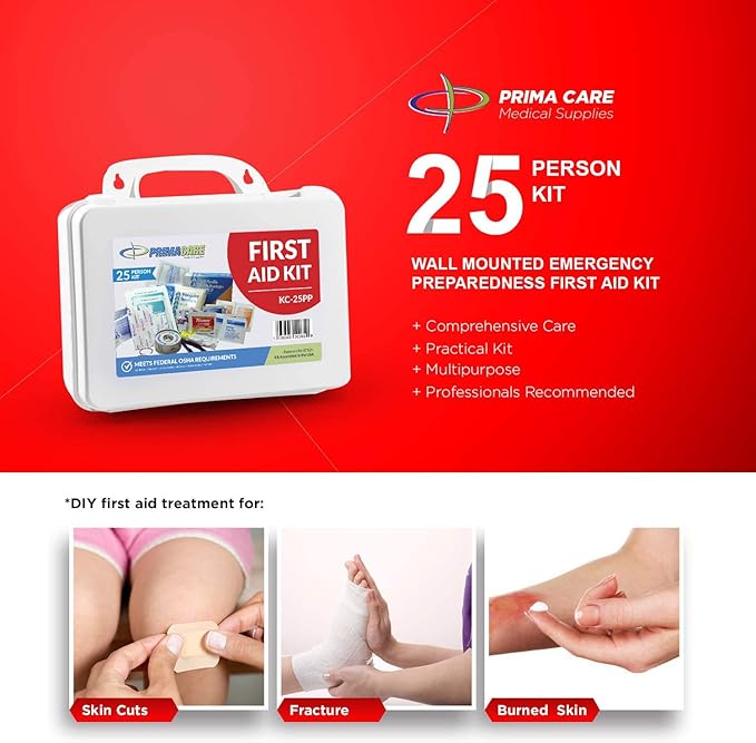 Primacare 25 Person Medium Emergency Preparedness First Aid Kit for Home, School and Office, Wall Mounted White
