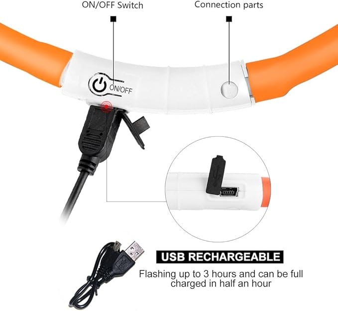 LED Dog Collar,USB Rechargeable Glowing Dog Collars, Light Up Collar Improved Pet Safety &Visibility at Night, 3 Flashing Modes,Water-Resistant LED Lighted Fits for Small Medium Large Dogs