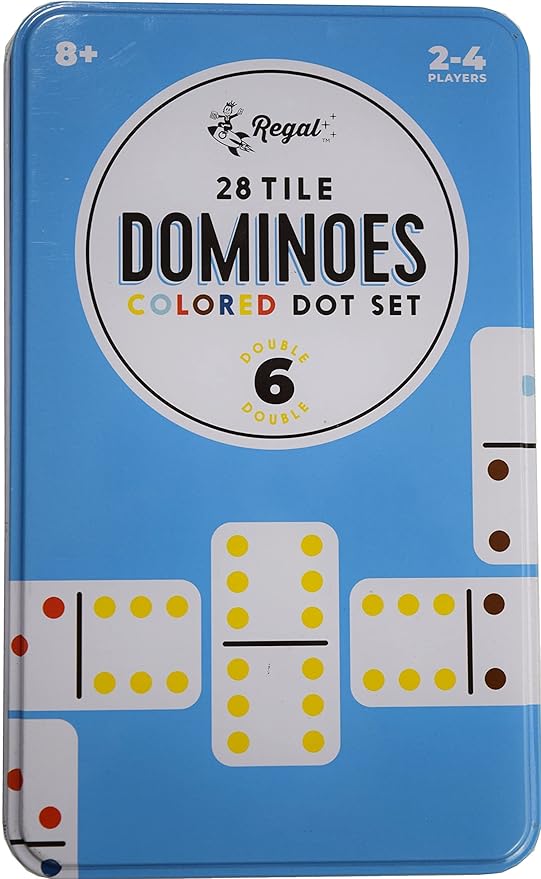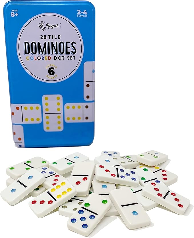 Regal Games Double 6 Dominoes Set for Adults & Kids - Classic Domino Game with 28 Tiles Colored Dots - 2 or 4 Player Games & Ideal for Family Fun Game Night and Travel (Ages 8+)
