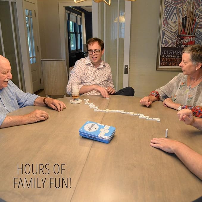 - Portable Play: Contained within a metal case, this set ensures easy storage of the tiles and effortless portability for on-the-go entertainment. Whether you're at home or traveling, organizing the dominoes is a breeze with this packaging.