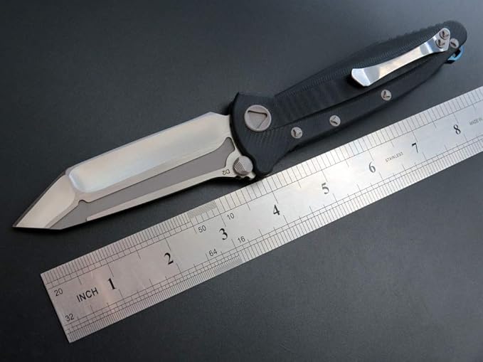 - 😍 Folding knife Total length:8.9inch.Blade length:3.9 inch.Handle length:5.1 inch.Blade width: 1.2 inch.Blade thickness: 0.16 inch.Knives net weight:5.5 oz.