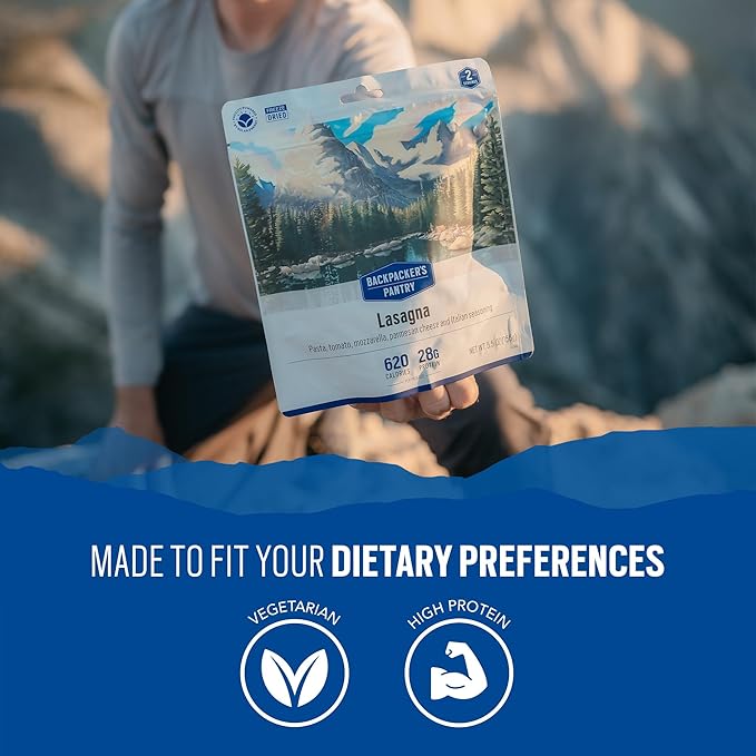 Backpacker's Pantry Lasagna - Freeze Dried Backpacking & Camping Food - Emergency Food - 28 Grams of Protein, Vegetarian - 6 Count