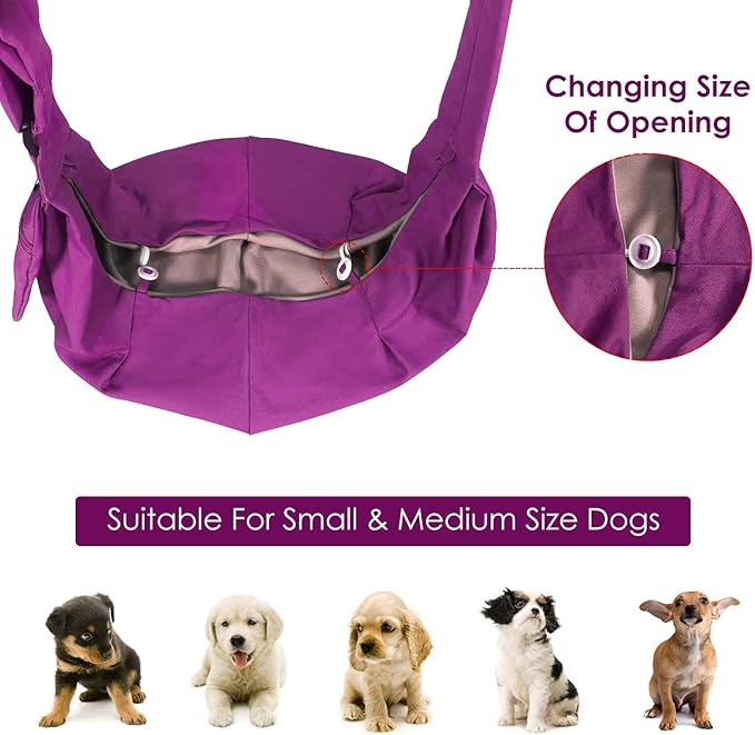 SlowTon Dog Carrier Sling - Thick Padded Shoulder Strap Adjustable Dog Carriers for Small Dogs, Puppy Carrier Purse for Pet Cat with Front Zipper Pocket Safety Belt Machine Washable (Fuchsia M)