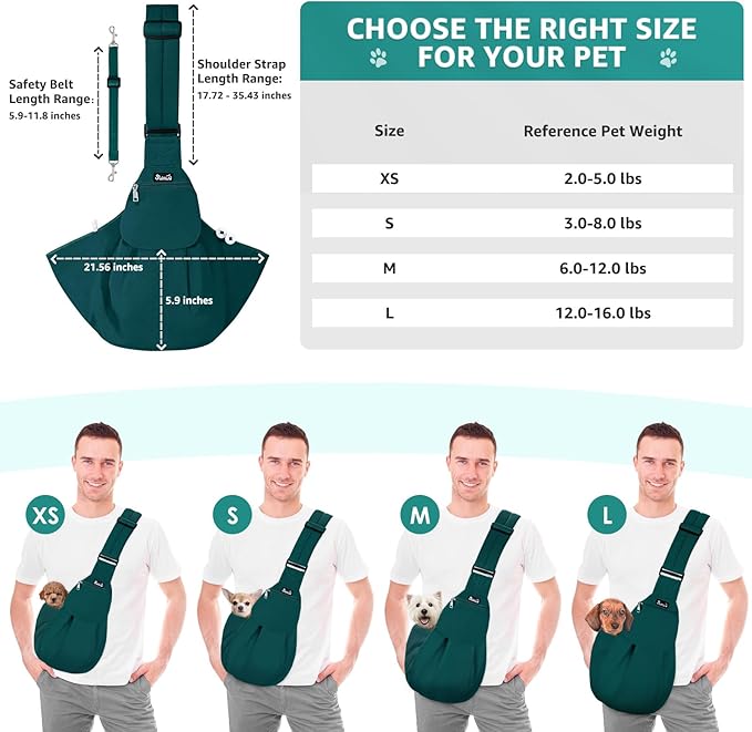 SlowTon Dog Carrier Sling - Thick Padded Shoulder Strap Adjustable Dog Carriers for Small Dogs, Puppy Carrier Purse for Pet Cat with Front Zipper Pocket Safety Belt Machine Washable (Green M)