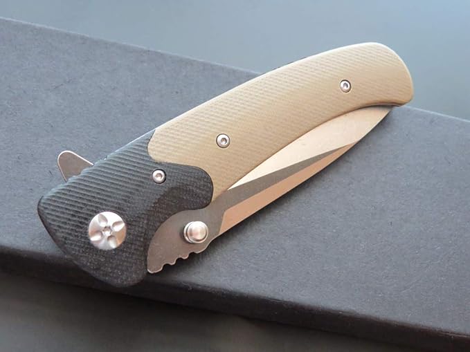 Eafengrow EF67 Pocket Knife with Metal Clip,D2 Steel Blade G10 Handle EDC folding knife Tool Liner Lock for Tourist Outdoor Camping Hiking Tactical (EF67-desert)