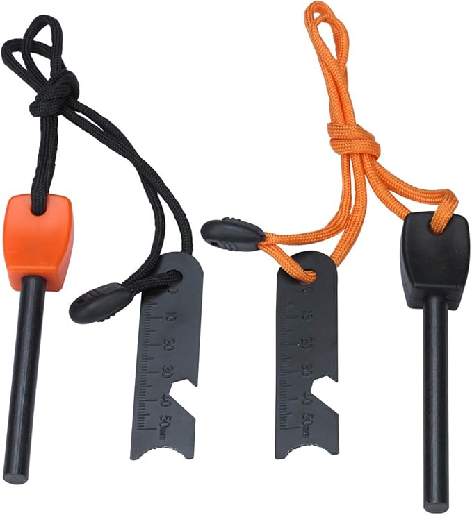 - HIGH QUALITY FERROCERIUM RODS: The fire steel rod is the perfect balance between softness & durability, consistently outperforming the leading fire starters. Will ignite a 5,500º F shower of sparks, light a fire instantly when you need.