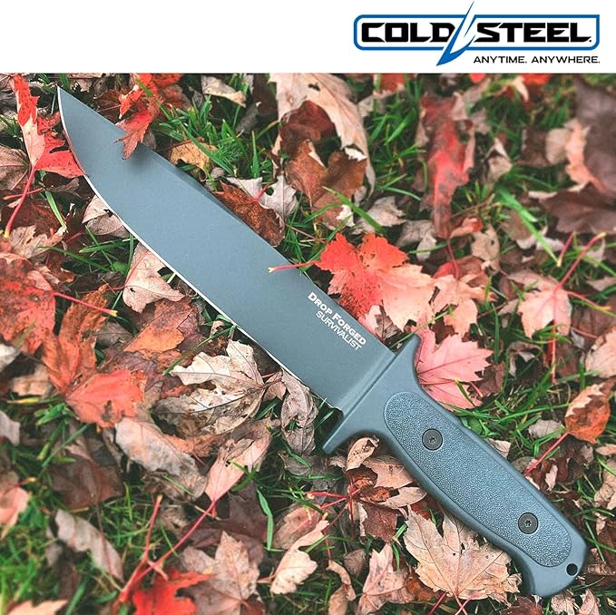 Cold Steel Drop Forged Survivalist 8" 52100 High-Carbon Steel Clip Point Fixed Blade EDC Tactical Hunting Utility Knife, 5" Ergonomic Handle, Weather-Resistant Secure-Ex Sheath